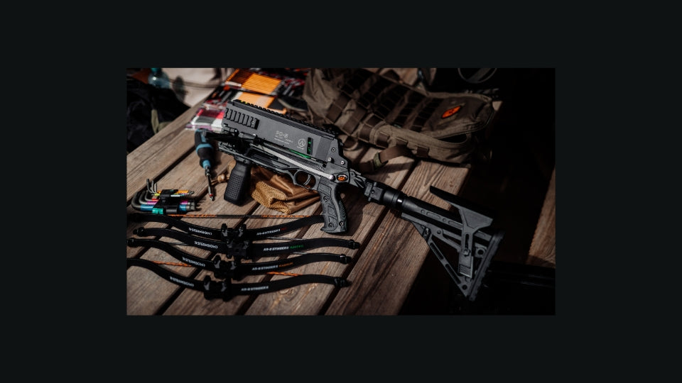 It is a very powerful yet compact repeating crossbow with an internal magazine. The crossbow can be disassembled very quickly without any tools, making it easy to carry in a backpack or bag. Assembly is also done in seconds, and the crossbow is instantly ready for use.