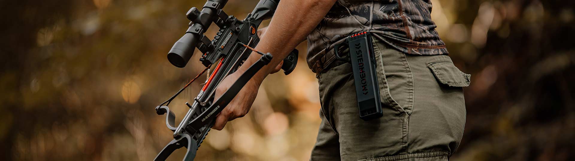 Steambow’s scope is designed for crossbows: compact, light and with a reticle that makes adjusting for arrow drop easier at different distances.