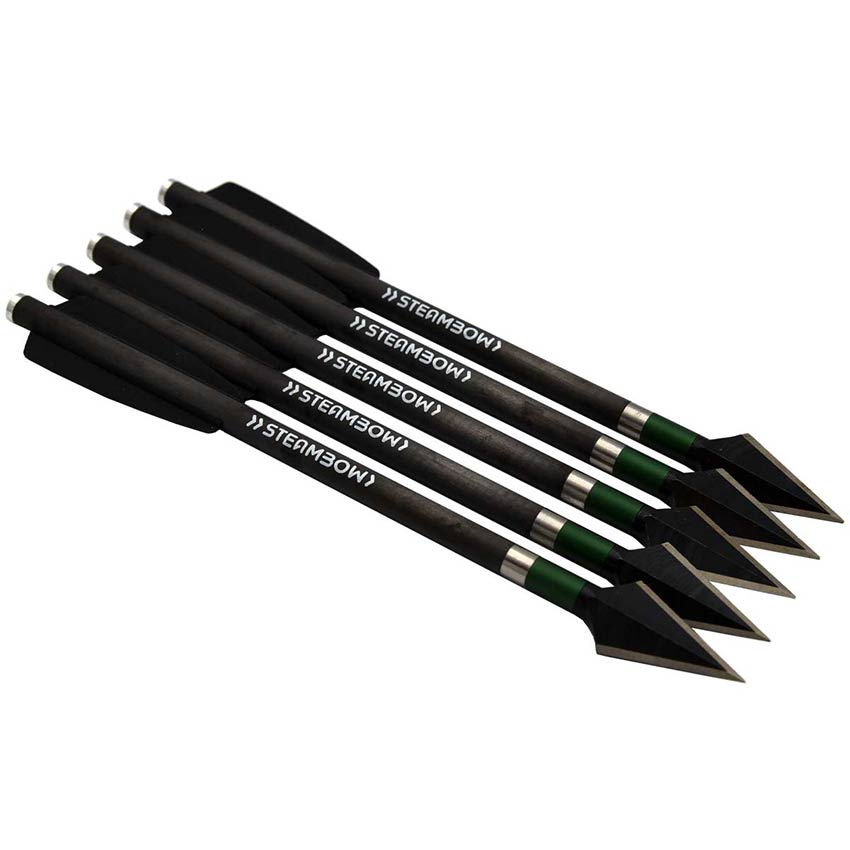 The arrows have a high-quality aluminum nock and have a carbon/aluminum hybrid shaft, i.e. inside the carbon shaft is still an additional aluminum shaft. This elaborate construction is responsible for the excellent flight characteristics and leads to extremely robust arrows. At just over 16 grams, these arrows are extremely heavy. This gives you a particularly high impulse when hitting the target and achieves a high energy yield from the throwing arm. This impulse, in combination with the sharp blade, makes these arrows very effective and extremely dangerous.
