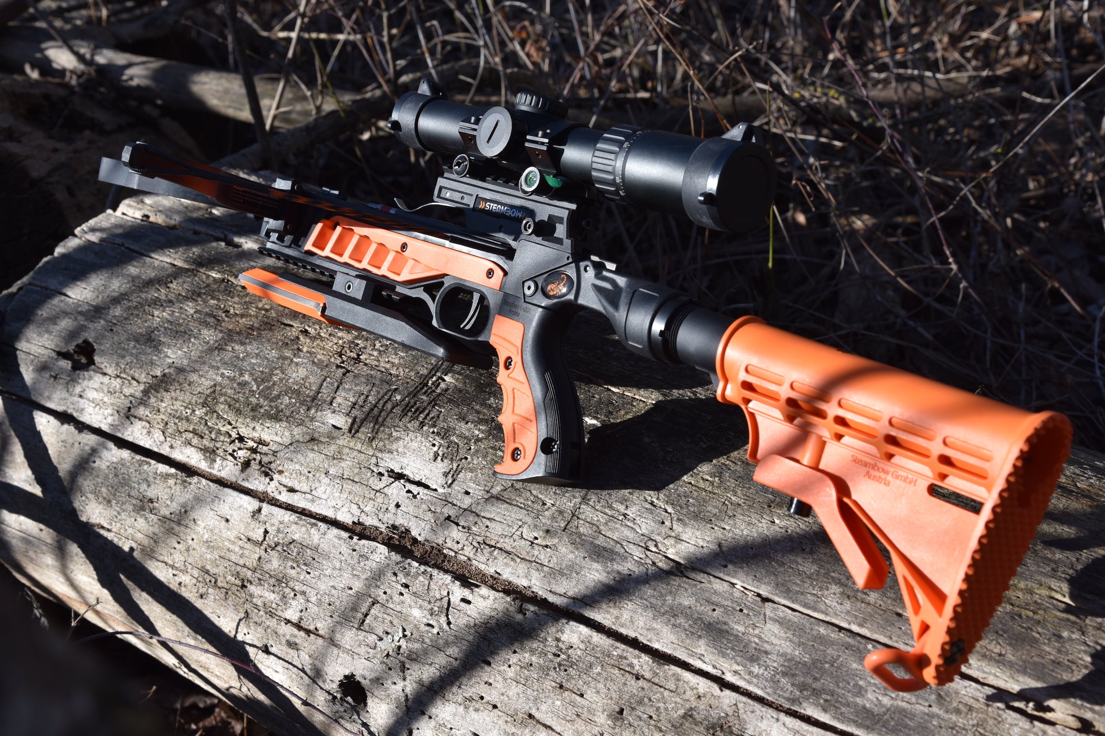 Wenn du eine kompakte Steambow AR-Series Armbrust schießt – und wir reden hier von Modellen ohne Tuning-Wurfarme – hast du wahrscheinlich entweder die Steambow AR-6 Compact, die Steambow AR-6 Tactical oder die AR-Series M10 Tactical in der Hand. Für den Bereich „Langstrecke“ sprechen wir hier von Distanzen zwischen 30 und 60 Metern. Zur Vereinfachung gehen wir mal davon aus, dass es sich um die Steambow AR-6 Tactical handelt, sofern nichts anderes erwähnt wird. Ihr Standard-Zuggewicht ist für diese Aufgabe gut geeignet, und der Schaft des AR-6 Stinger II Lower sorgt für die nötige Stabilität, die dir bei der Steambow AR-6 Compact im Pistolenmodus fehlt.