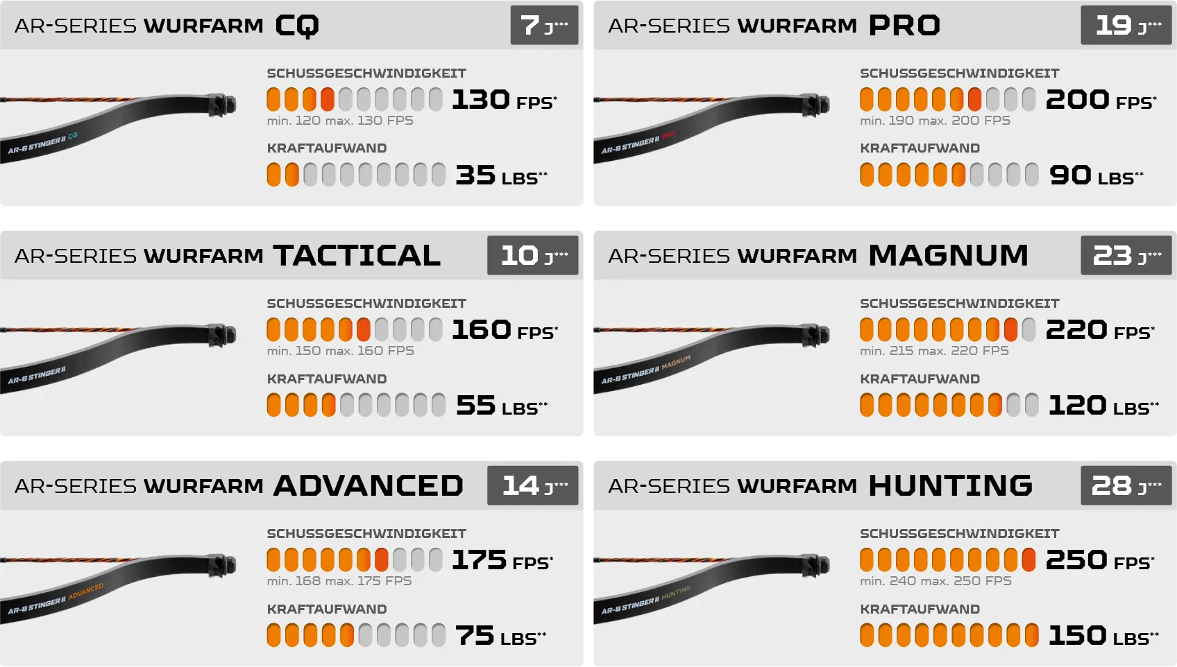 * Die Verwendung von Pfeilen mit einem Gewicht von weniger als 10 Gramm (155 grains) kann zu Beschädigungen an der Ausrüstung führen.